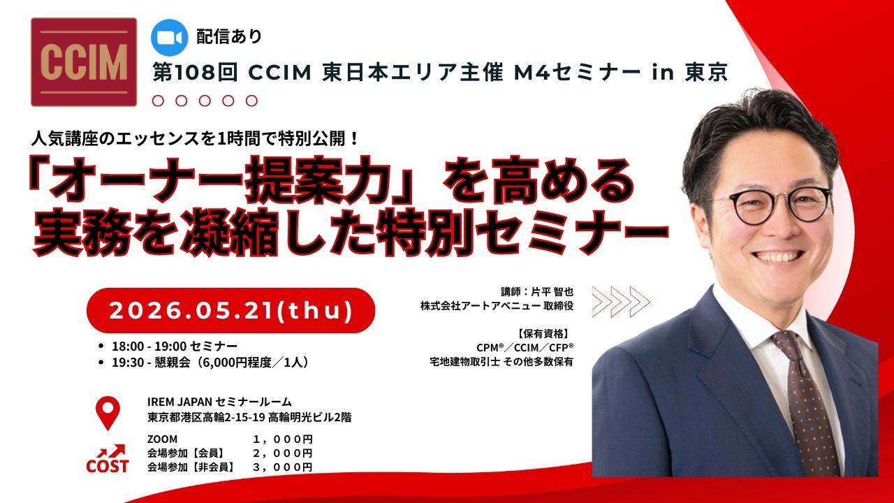 CPM®、CCIMをお持ちの方、必見の内容となります!